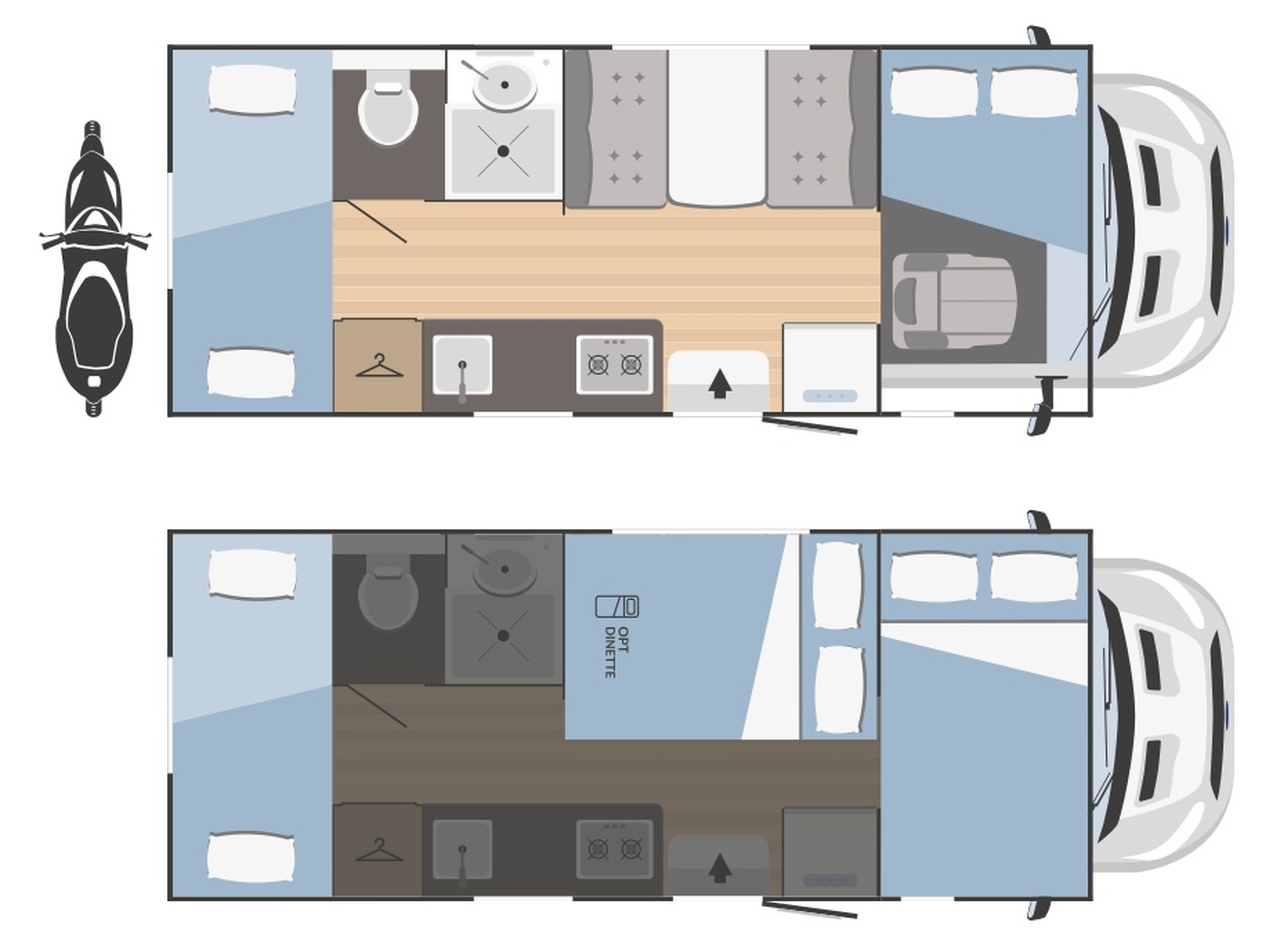 • Dwa łóżka piętrowa w tylnej części pojazdu, 880 x 2200 mm