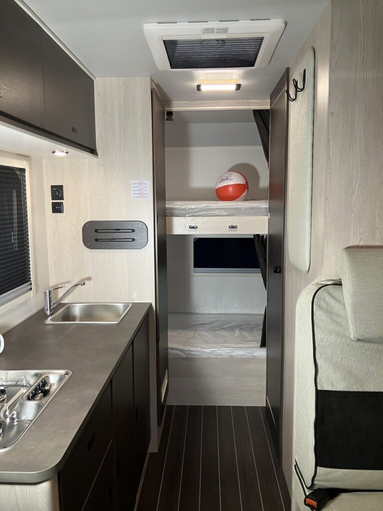 • dwa jednoosobowe piętrowe łóżka w tylnej części pojazdu, 2 x 880 x 2200 mm