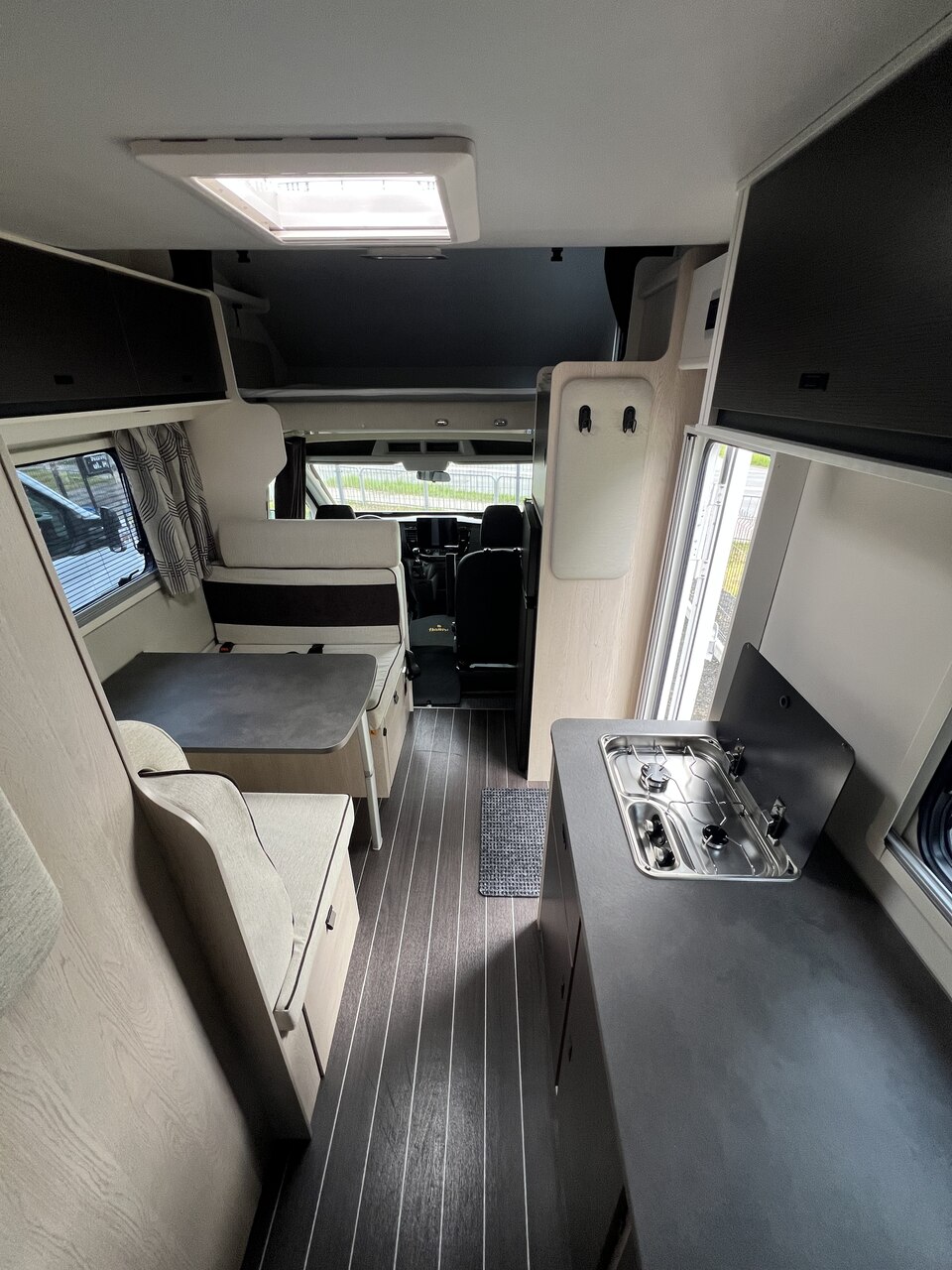 Manualna skrzynia, przestronne wnętrze, duża łazienka i funkcjonalna kuchnia. Idealny na rodzinne, spokojne wypady.